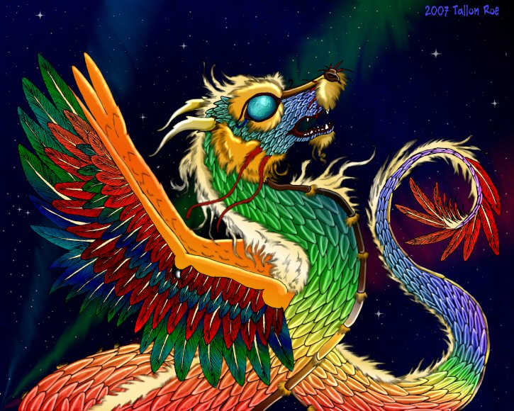 approaches the icy south pole. In Seryn mythology, he is depicted as a brighty-colored feathered serpent, hence the image